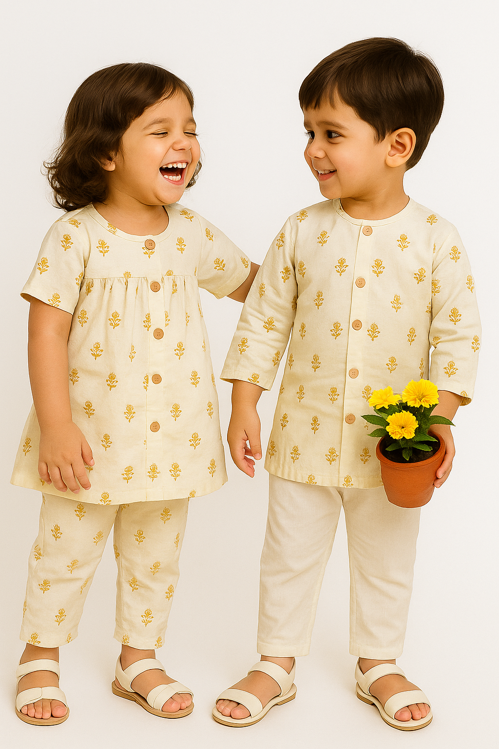 Kurta: Made of super soft cotton with front buttons.