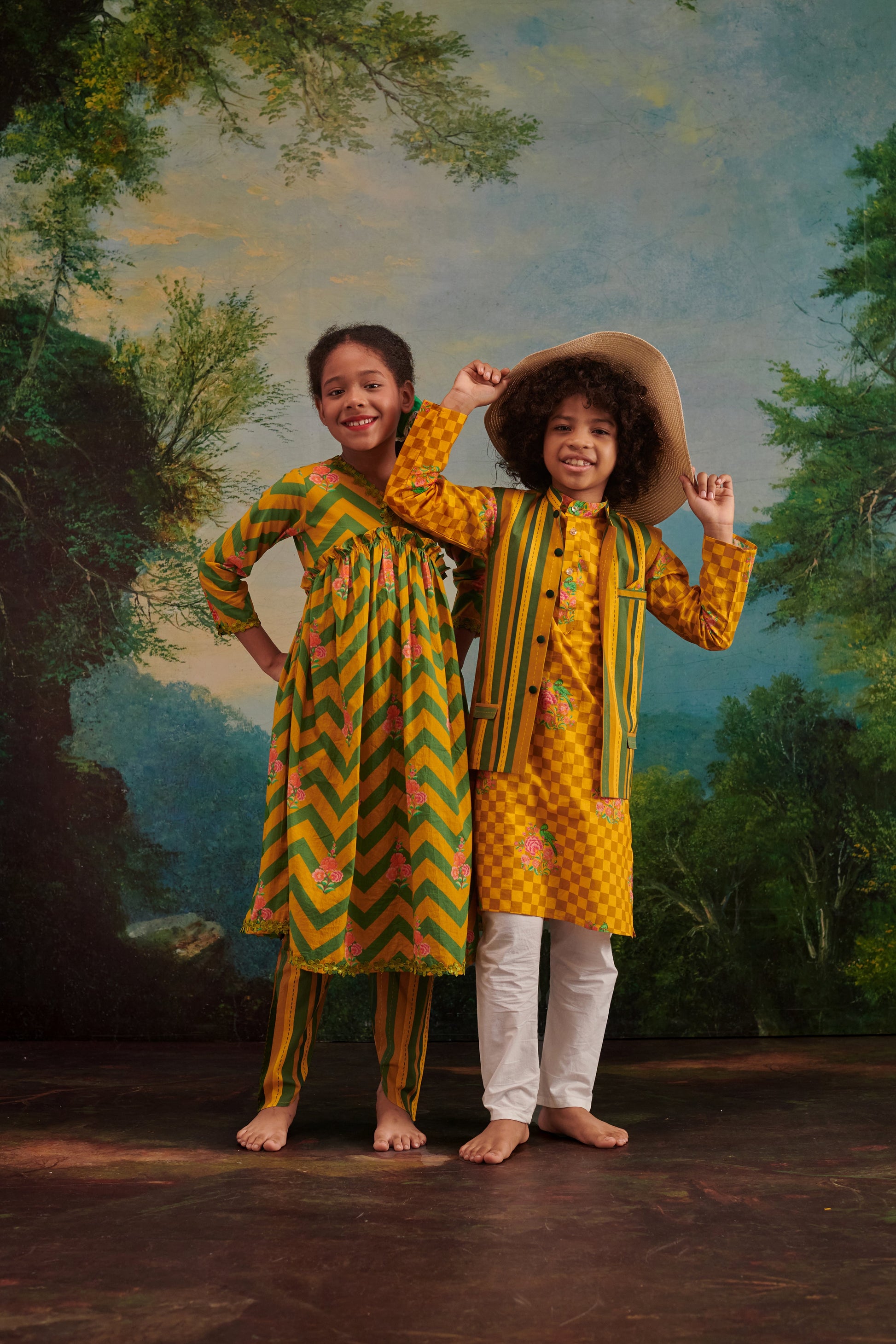 Top : Made of fancy cotton with contrast schiffli lace detailing.