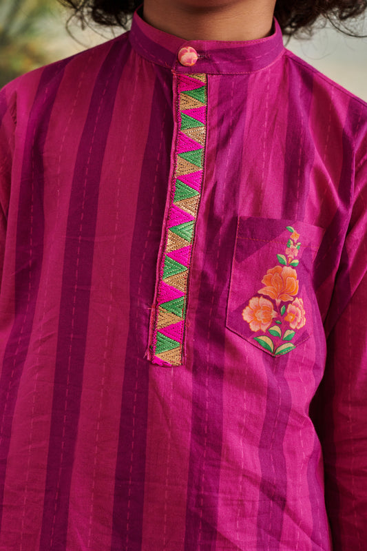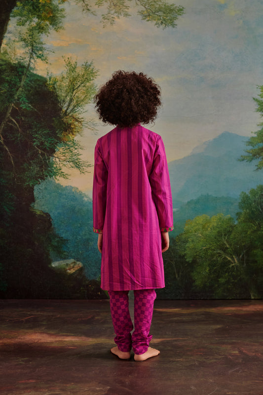 Girl 3pc Checks Parrot Anarkali Kurta Set-Purple