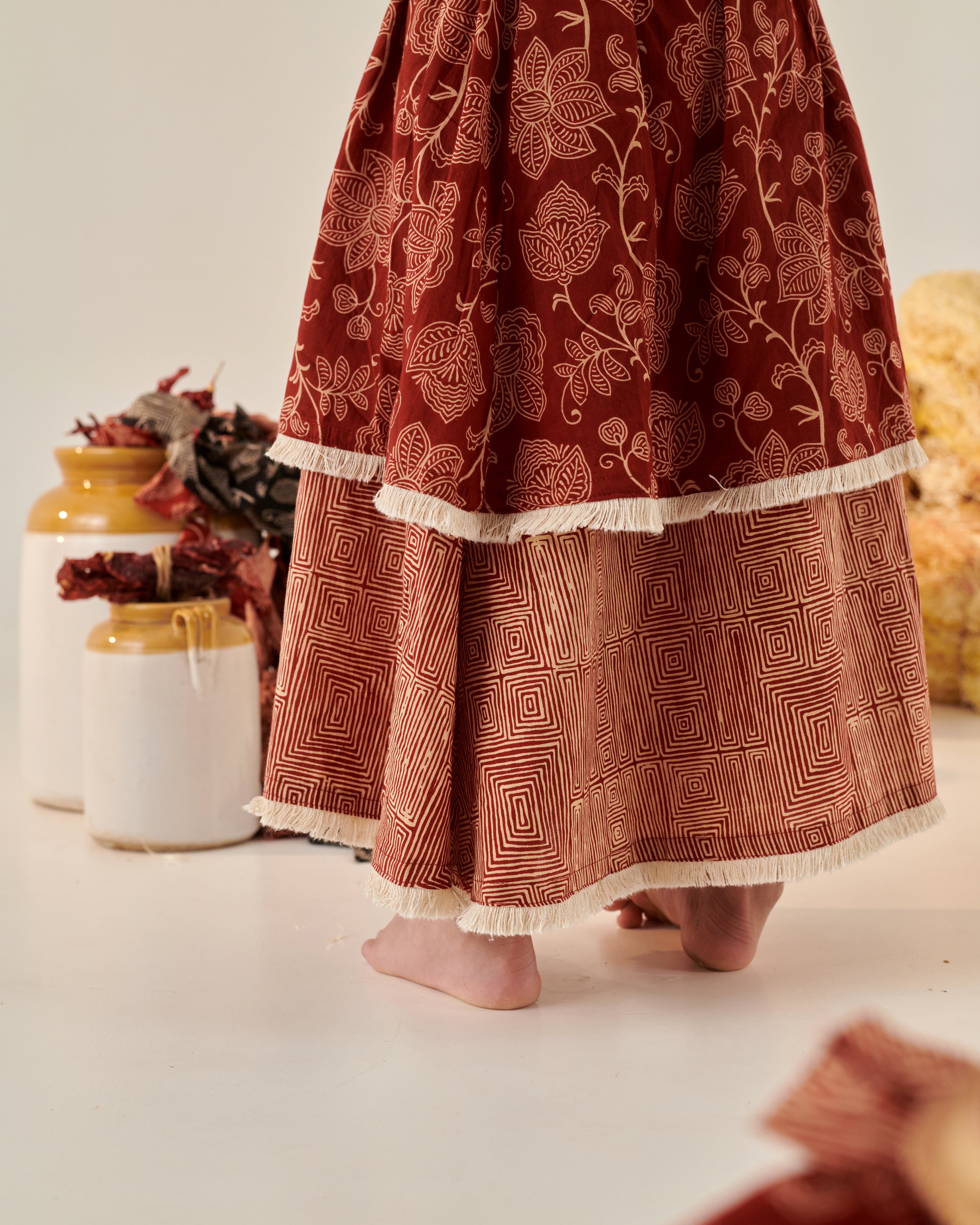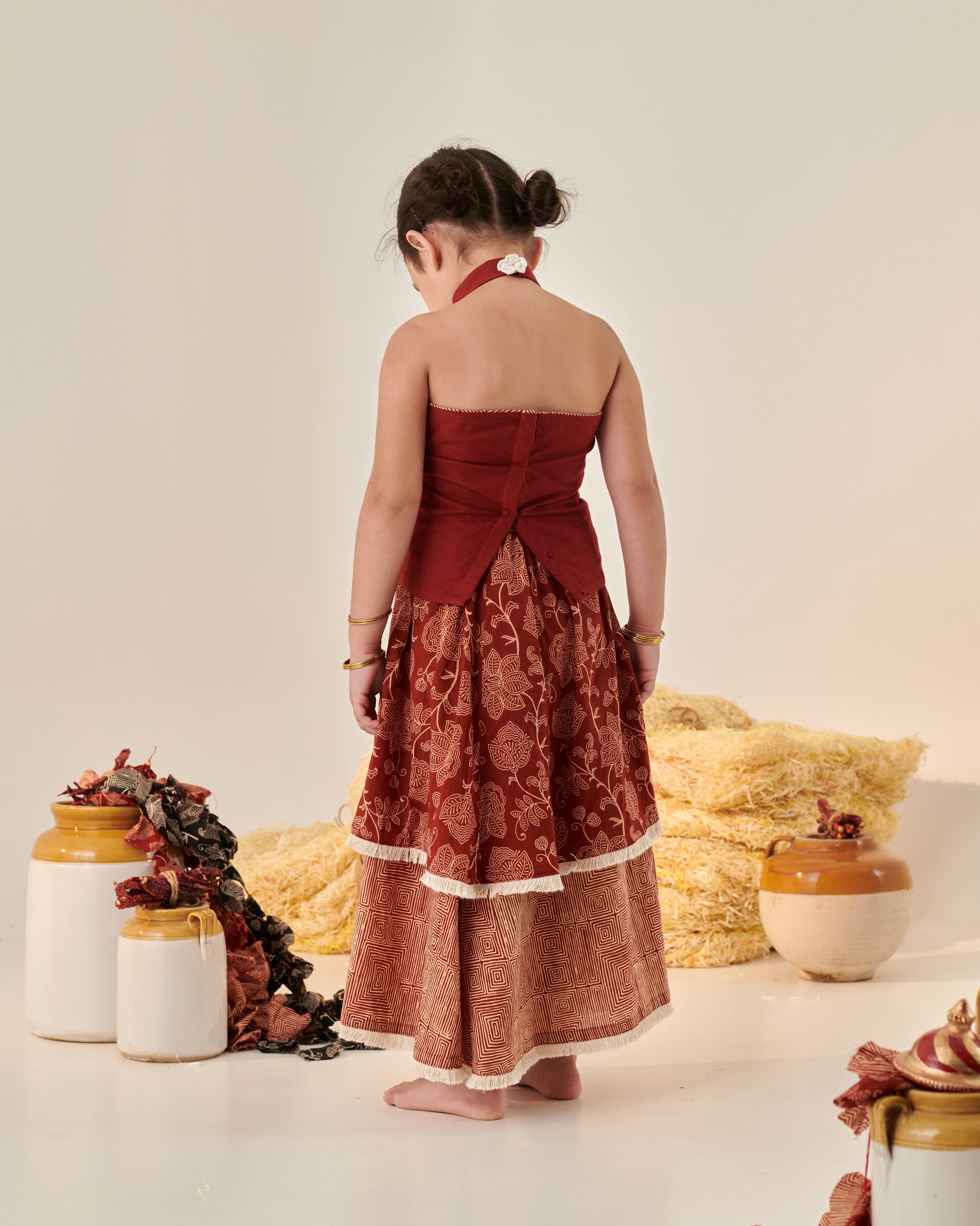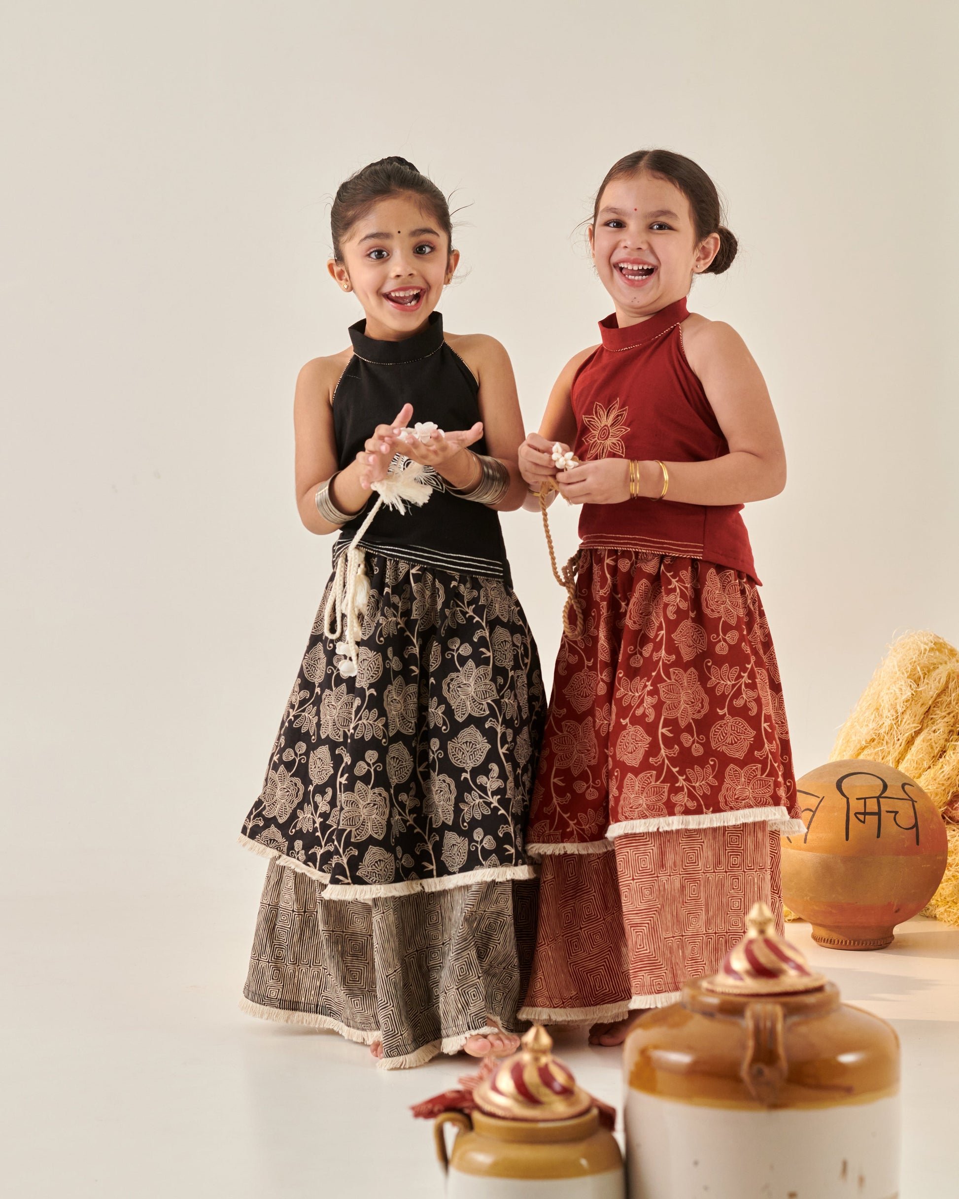 Skirt is with elasticated waist and trendy lacing and tassels for best fit and kurta has back buttons