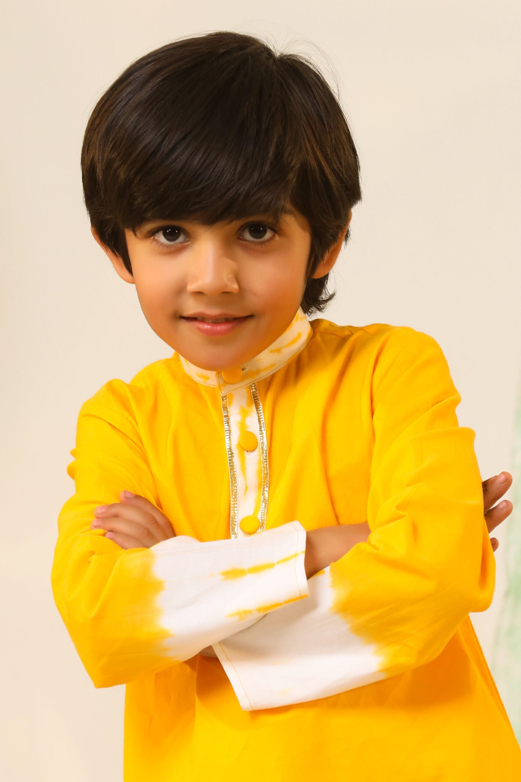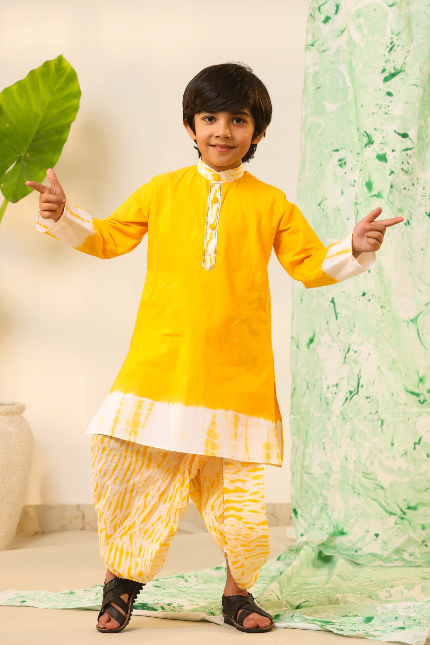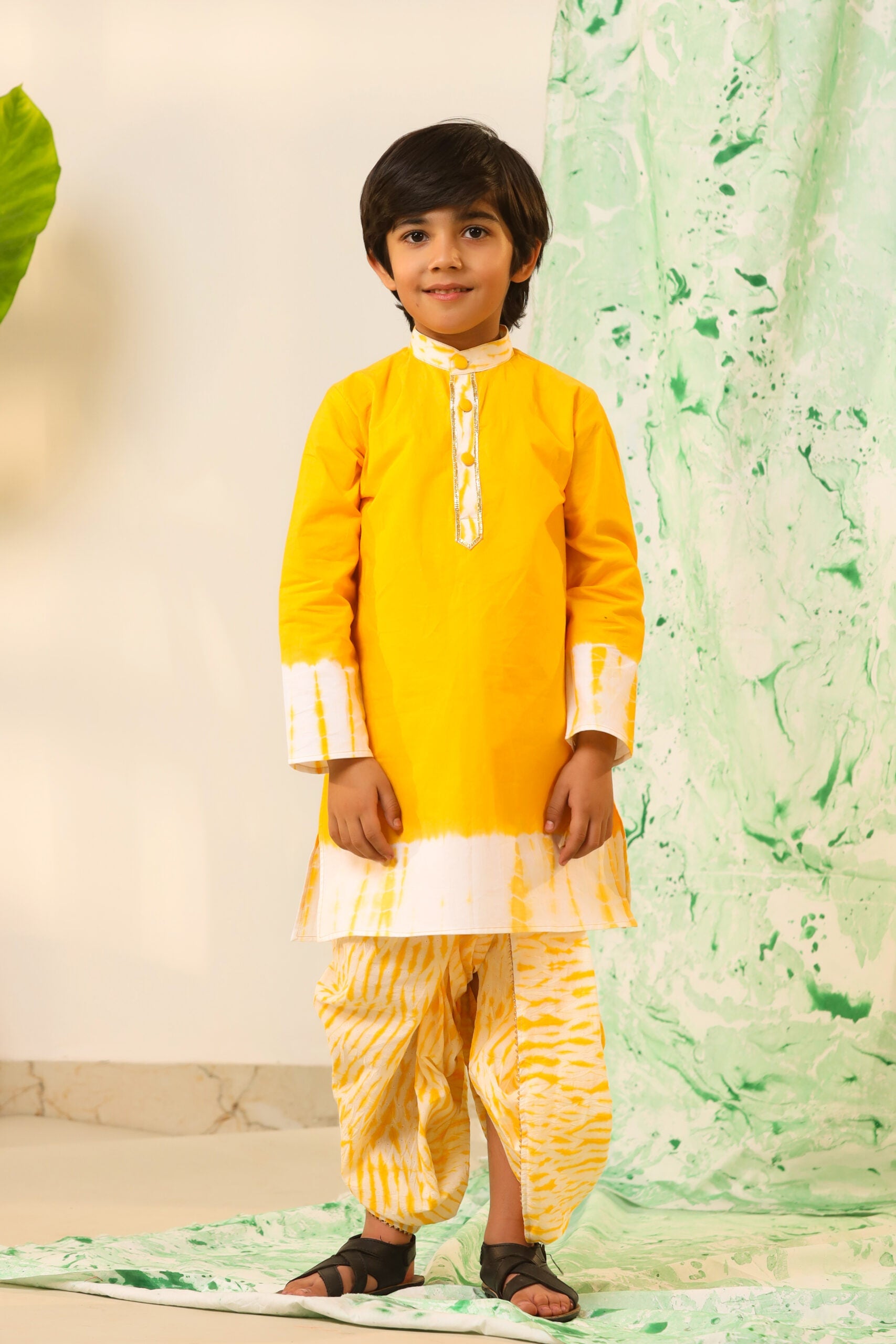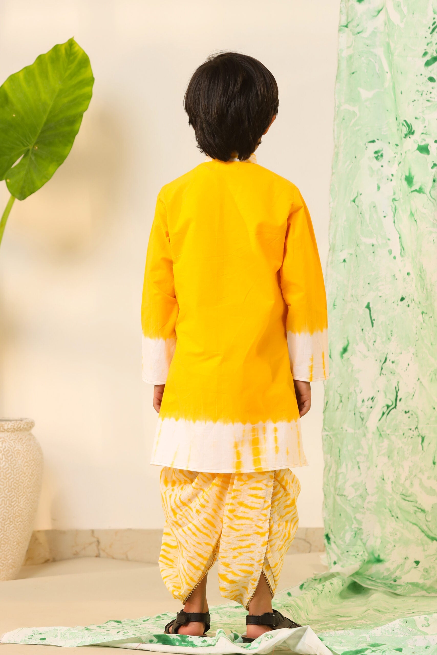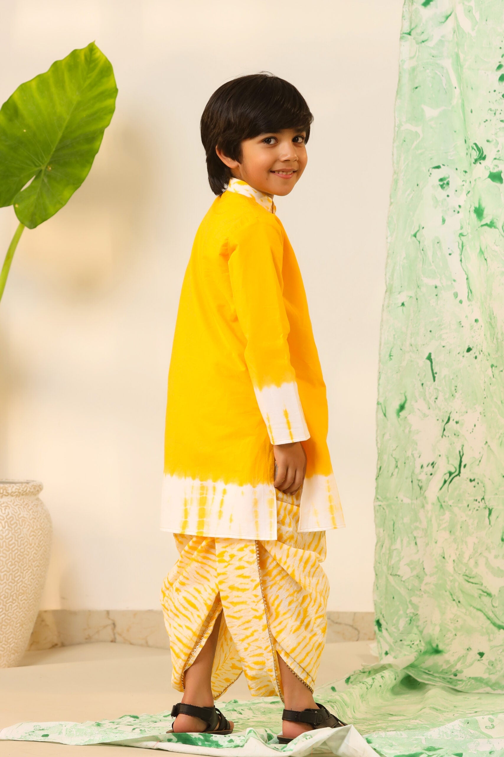 Boy Shibori Print Dhoti Kurta Set-Yellow
